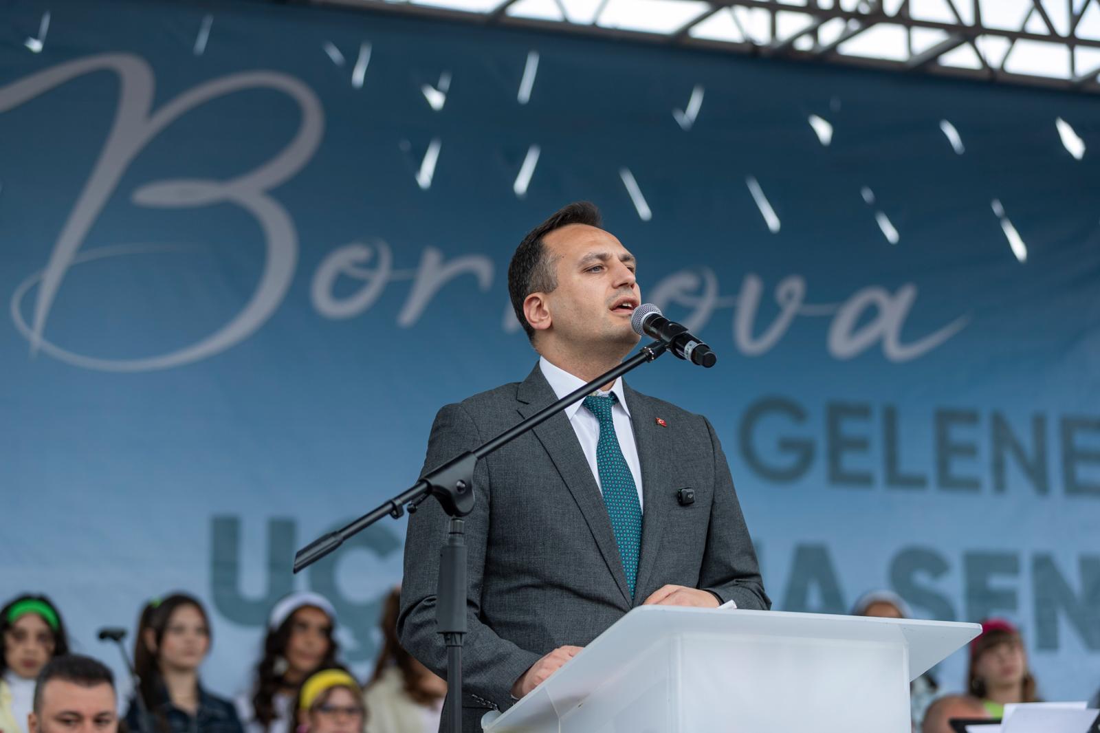 Bornova Belediye Başkanı Ömer Eşki, “Dünya üzerinde bizden başka bir millet yok ki çocuklara bayram hediye etsin. En güzel, en özel, en değerli varlıklarımız olan çocuklarımıza Ulu Önder Gazi Mustafa Kemal Atatürk onlar kadar güzel bir günü, bayramı armağan etmiş. Ne mutlu bize ki İzmir'de yaşıyoruz, bayrağımızın altında özgürce milli egemenlik altında yaşıyoruz. Ne mutlu bize ki bugünü çocuklarımıza ayırdık. Onların güzelliğini gökyüzüne yansıtmak istedik” dedi.