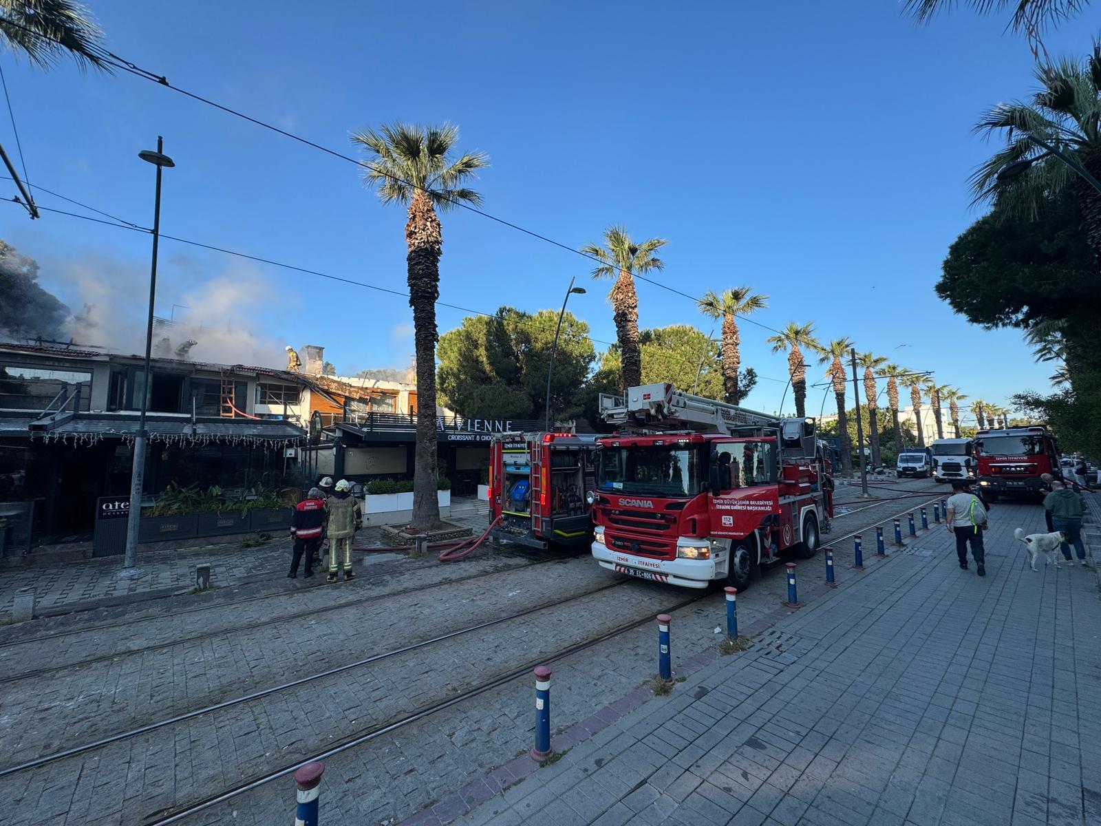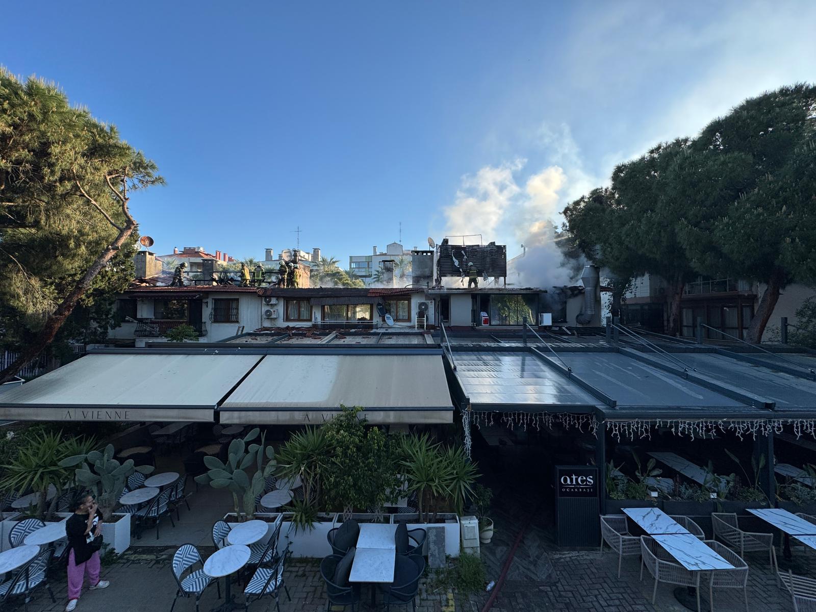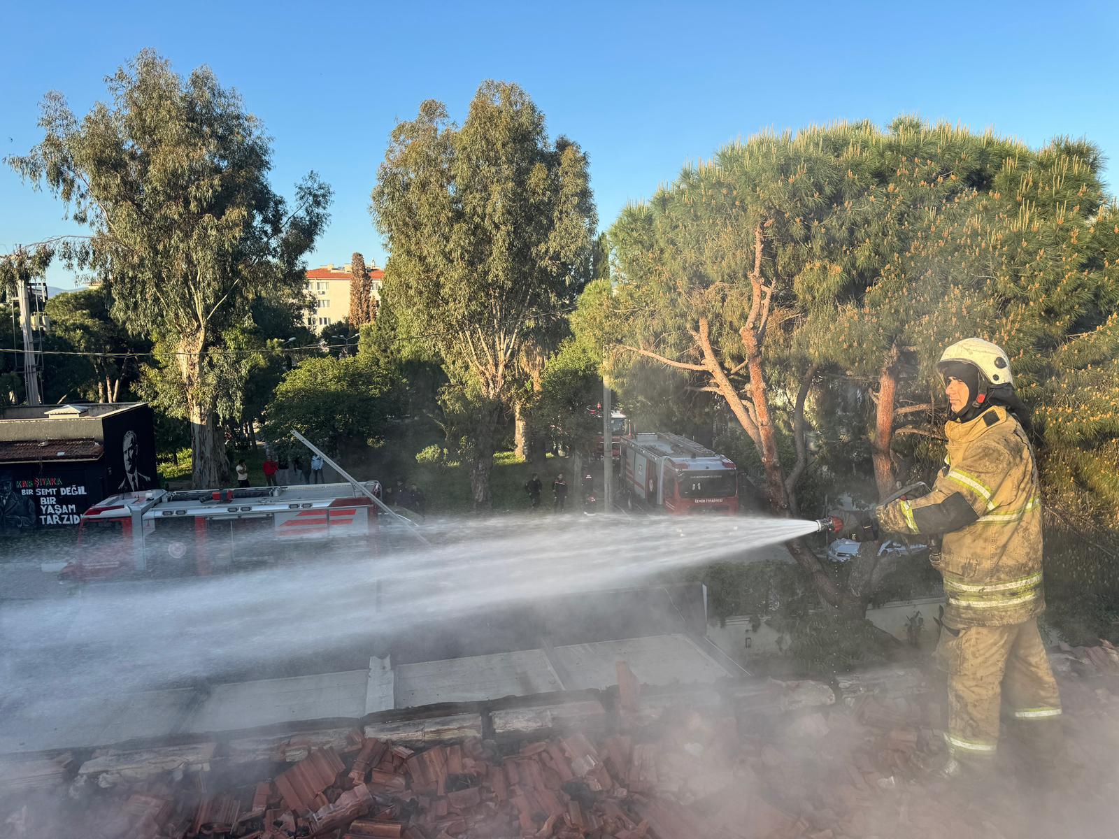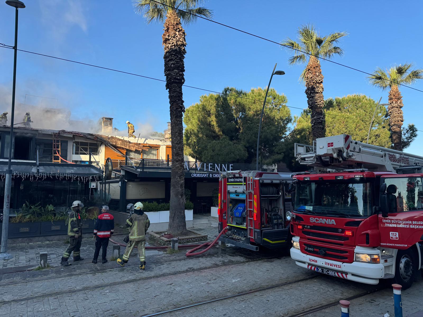 İzmir’in Karşıyaka ilçesi Bostanlı Mahallesi Cengiz Topel Caddesi’nde bir restoranın çatı kısmında çıkan yangın, kısa sürede büyüyerek çevredeki yapılara sıçradı. İhbar üzerine İzmir Büyükşehir Belediyesi İtfaiye Dairesi Başkanlığı ekipleri olay yerine sevk edildi. İtfaiye ekiplerinin yoğun müdahalesi ile yangın büyümeden kontrol altına alındı.