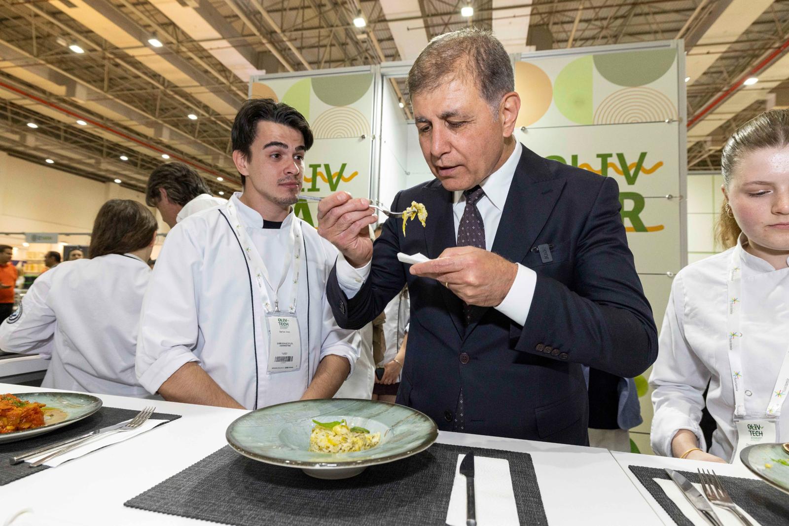 İzmir Büyükşehir Belediyesi ev sahipliğinde, İZFAŞ tarafından düzenlenen Olivtech - 12. Zeytin, Zeytinyağı, Süt Ürünleri, Şarap ve Teknolojileri Fuarı, Fuar İzmir'de kapılarını açtı. Üretimden sofraya uzanan dev buluşmanın önemine vurgu yapan İzmir Büyükşehir Belediye Başkanı Dr. Cemil Tugay, “Geleceğin tarımını, ülkesini birlikte kuracağız. Bunlar asla boş sözler değil. Bu ülkenin evlatları bu ülkenin kurtuluşunu sağlayacaklar. Türkiye kendi çocuklarıyla şifa bulacak” şeklinde konuştu.